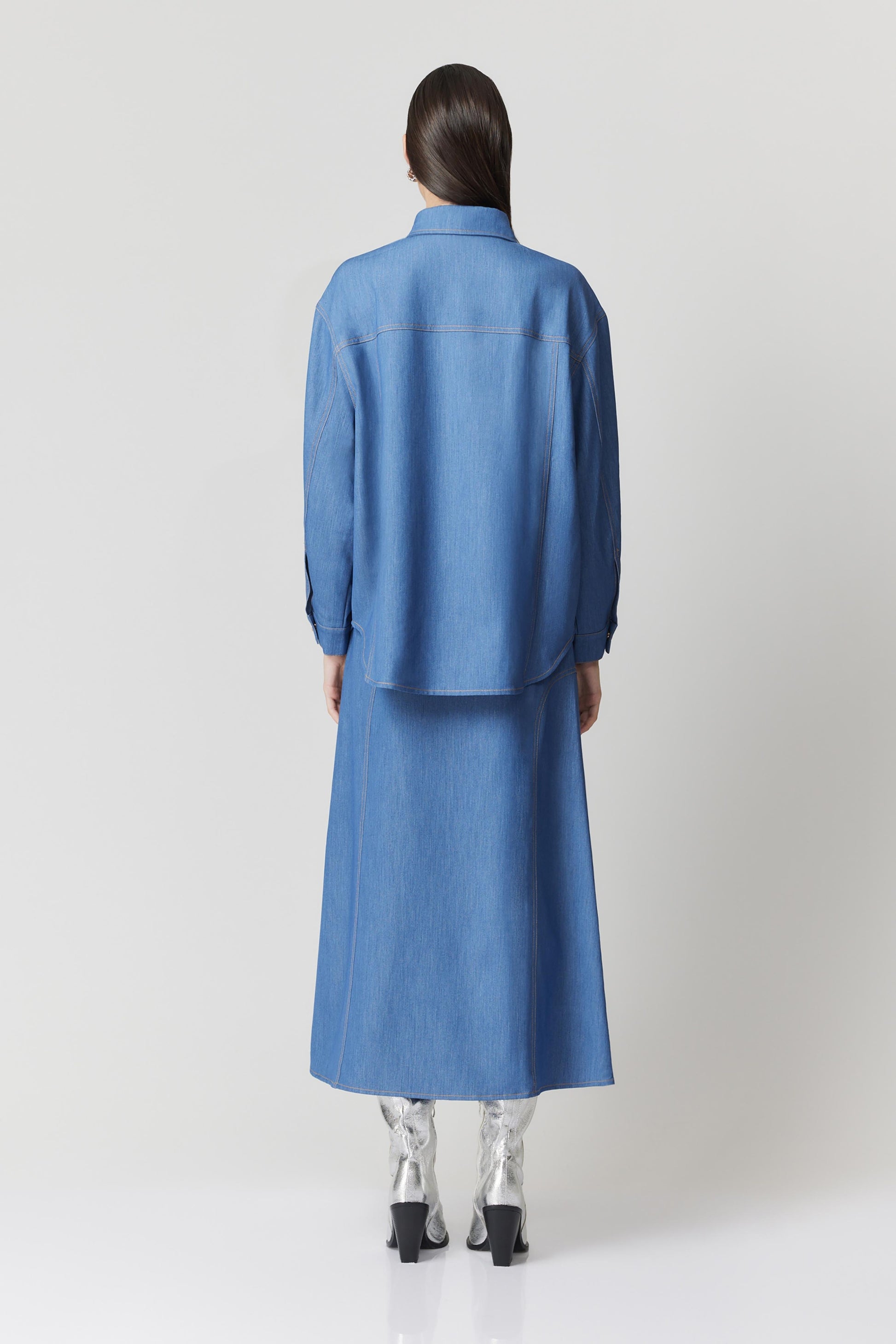 This lightweight, oversized button-down is crafted for an easy, comfortable fit. The brushed gold button details add subtle contrast, making it an effortless choice for casual or elevated looks. With its relaxed silhouette and breathable fabric, it’s a versatile piece that transitions seamlessly from layering to standalone wear.
